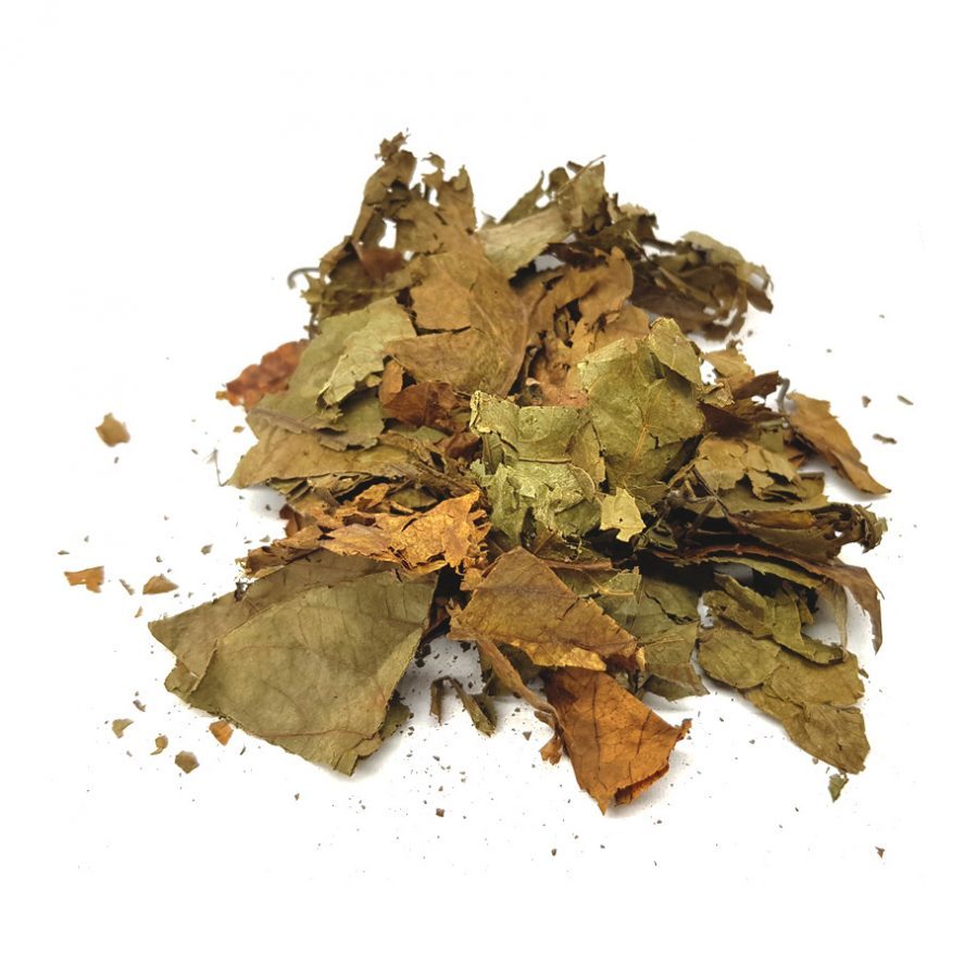 Banisteriopsis caapi je posvátná rostlina amazonských šamanů, známá jako „liána duchů“. Ačkoliv nejčastěji využívanou částí rostliny jsou stonky, sušené listy Banisteriopsis caapi rovněž obsahují účinné beta-karboliny – harmin, harmalin a tetrahydroharmin – které přispívají k celkovému rituálnímu i terapeutickému účinku.