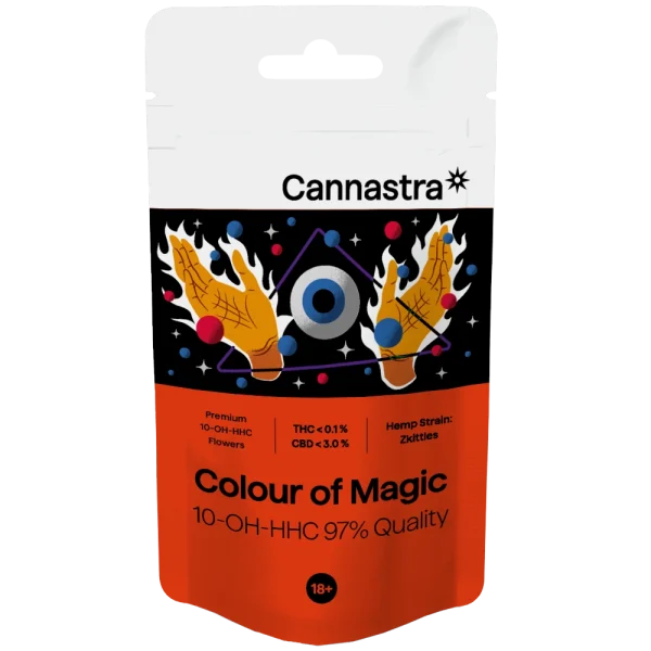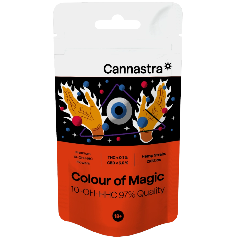 Objevte svěží explozi chutí s Cannastra Zkittlez – výběrovými konopnými květy obohacenými o 97 % 10-OH-HHC. Sladká, ovocná vůně s tóny tropického ovoce a lesních plodů zajišťuje nejen chuťový požitek, ale i hluboký pocit relaxace a pohody.