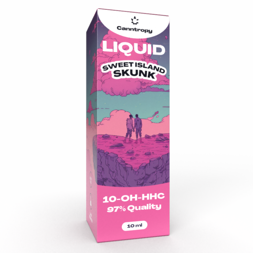 🌴 Canntropy 10-OH-HHC Liquid Sweet Island Skunk (97 %, 10 ml) je prémiový e-liquid určený pro náročné uživatele, kteří hledají silný účinek, výjimečnou chuť a maximální kvalitu. Tento liquid s vysokou koncentrací 10-OH-HHC (97 %) přináší intenzivní, avšak vyvážený zážitek, ideální pro chvíle relaxace i kreativní soustředění během dne.