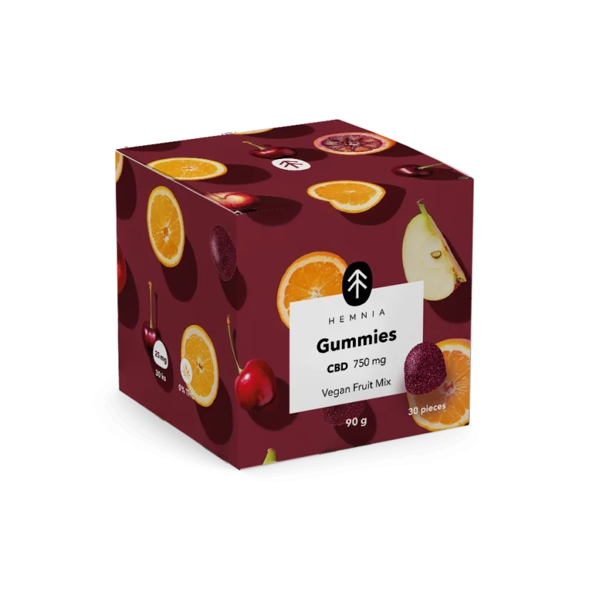 5. Hemnia CBD Vegan gummies, fruit mix, 750 mg CBD, 30 pcs x 25 mg, 90 g
