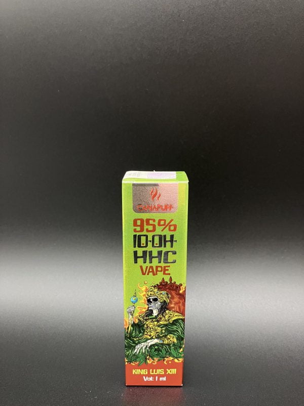 Experience a royal combination of flavors with the King Luis XIII vape pen from CanaPuff. The combination of earthy tones, fresh lime, and subtle diesel creates a rich and unforgettable flavor profile. Thanks to its 95% 10-OH-HHC content, the effect is strong but balanced – ideal for more demanding users.