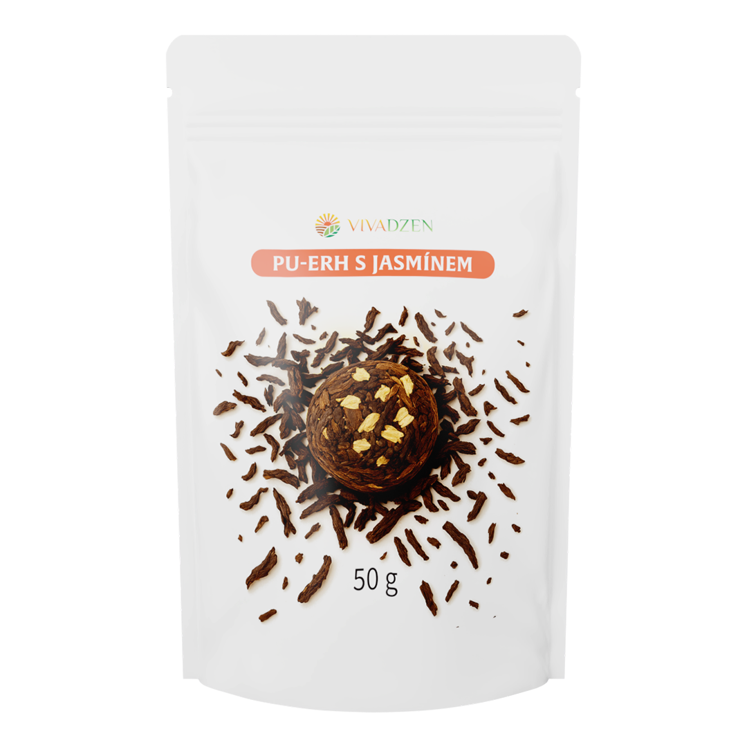 🌿 Fermented Shu tea (aged Pu-erh) enriched with natural jasmine aroma