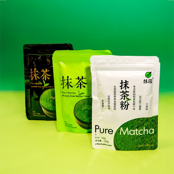 Matcha is a premium Japanese green tea produced by finely grinding shaded tea leaves into a rich green powder. Thanks to this traditional processing, the tea retains 100% of its nutrients, which are lost during normal brewing.