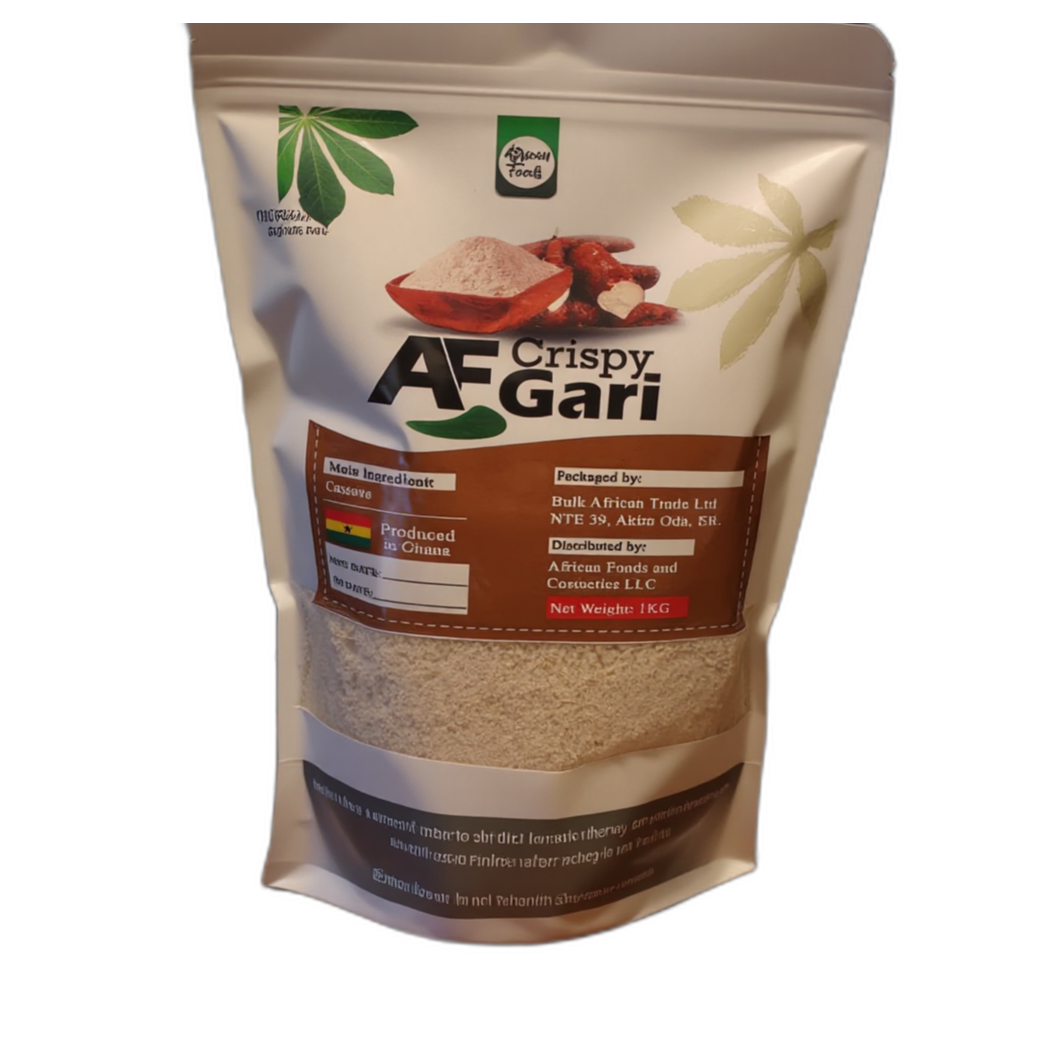Гарри – это сброженная, обжаренная и измельченная мука из корня кассы (маниоки), популярная в Нигерии, Гане и других частях Западной Африки. Но AF Crispy Gari — это не просто гари. Это хрустящая версия с еще более ярким вкусом и приятной текстурой, которая делает его любимым как для классических блюд, так и для современных экспериментов.