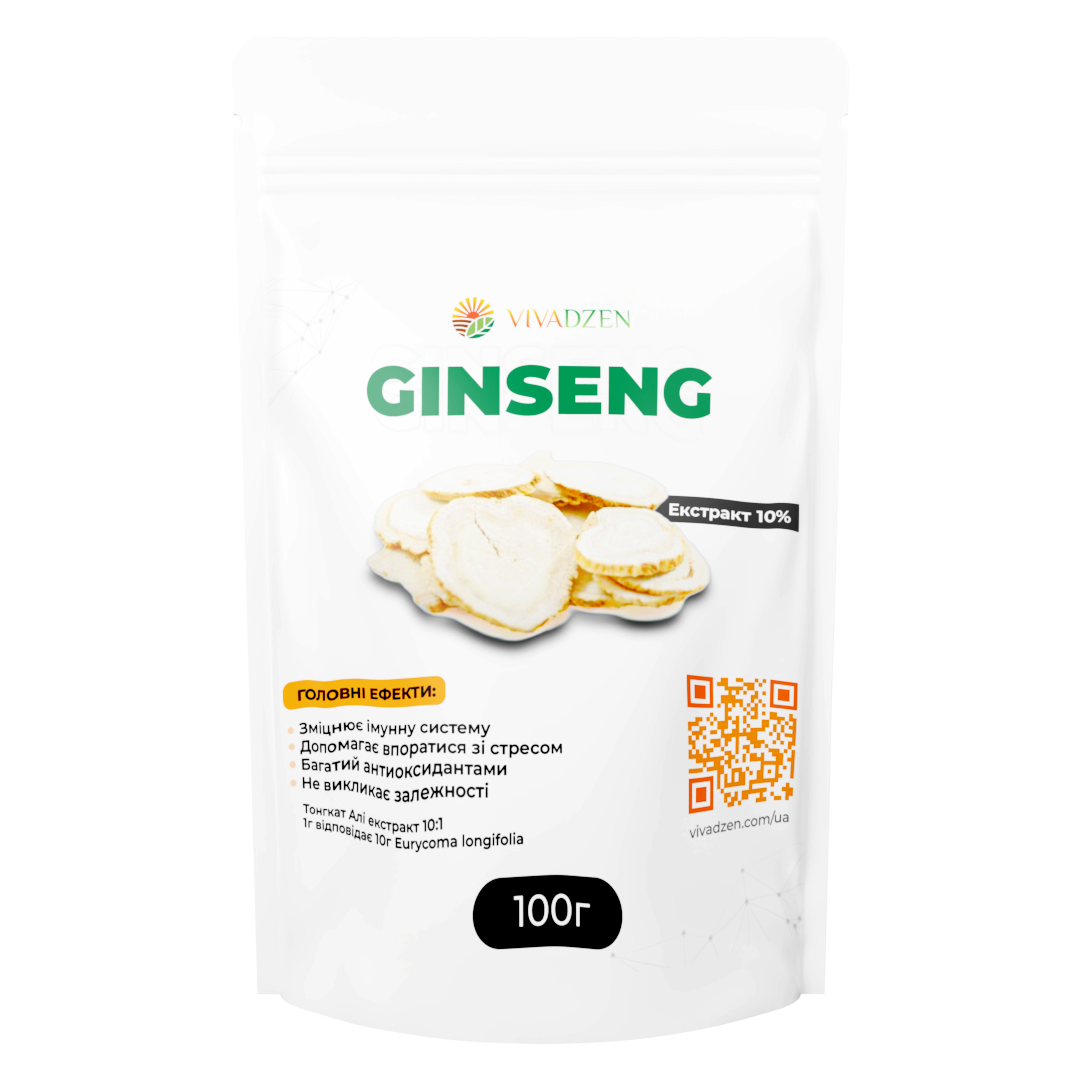 Женьшень — легендарна рослина, що століттями використовувалась у традиційній медицині Азії як засіб для підтримки життєвих сил, імунітету та витривалості. Цей екстракт виготовлений у пропорції 10:1, що означає, що 1 грам порошку містить силу 10 грамів кореня женьшеню — усе найцінніше, без зайвого.